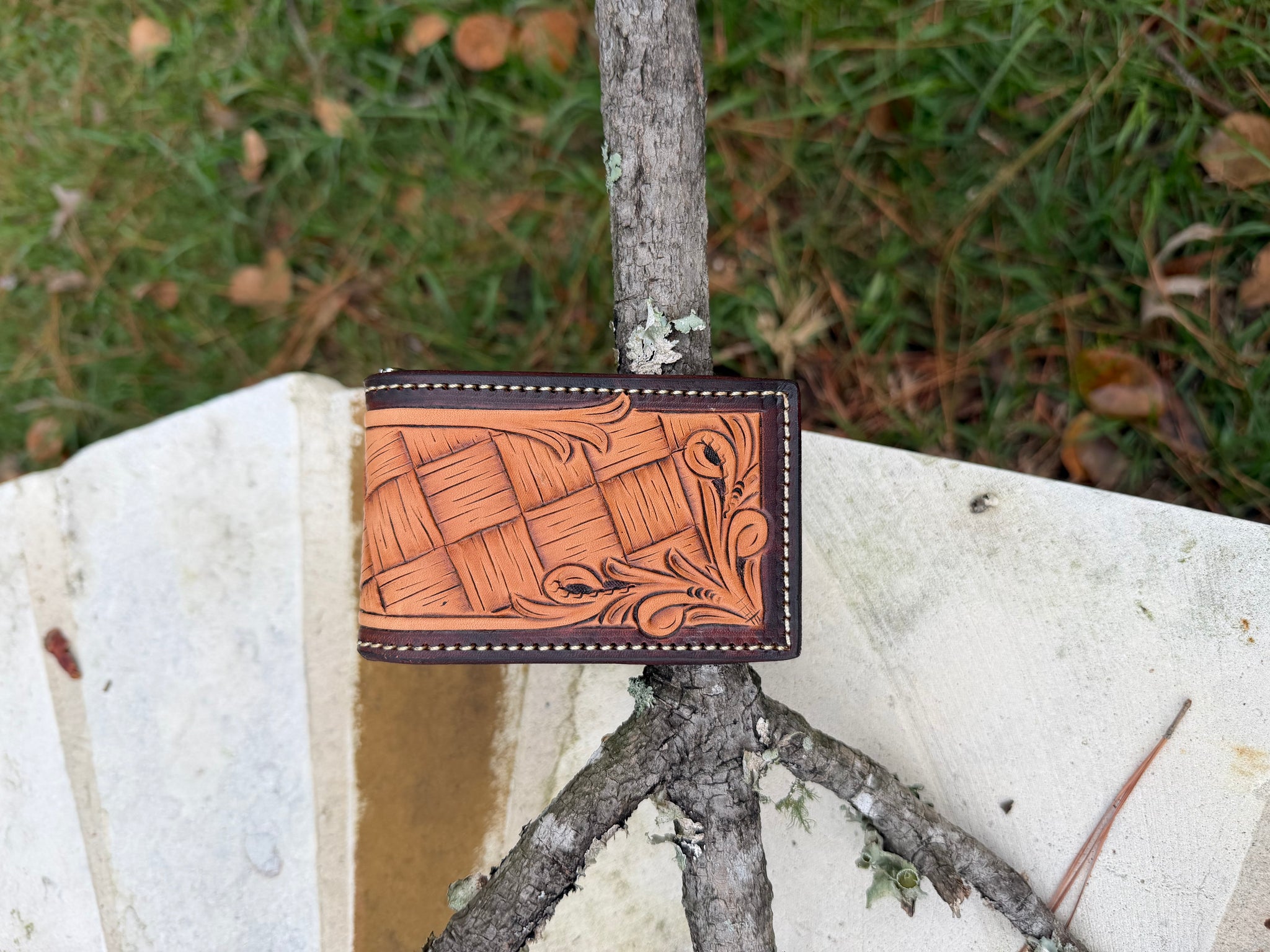 Money clip wallet with chocolate buttero inlay